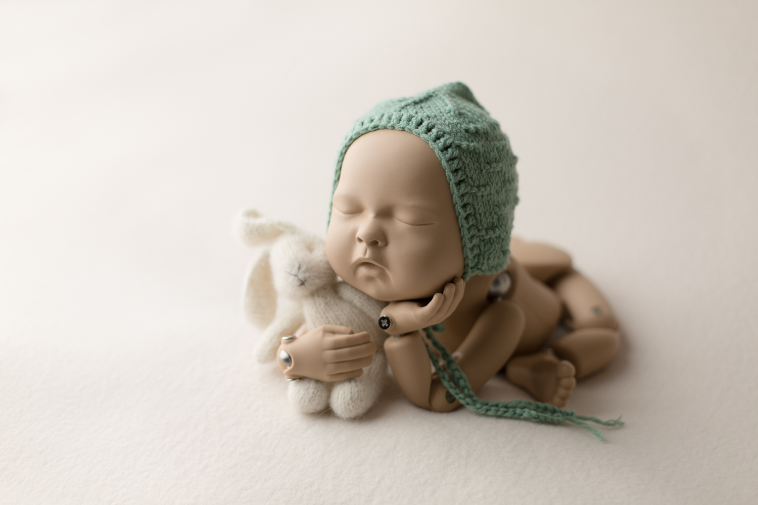 Mit einer Übungspüppe kann man das Fotografieren von Neugeborenen super üben – das halten, wrappen eines Babys, das richtige einsetzen des Lichts, u.v.m.